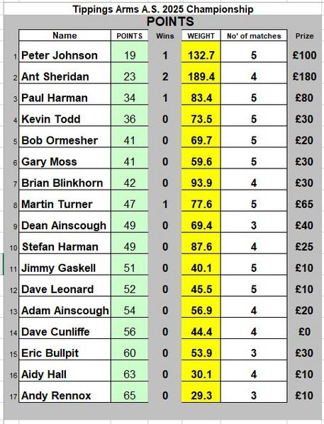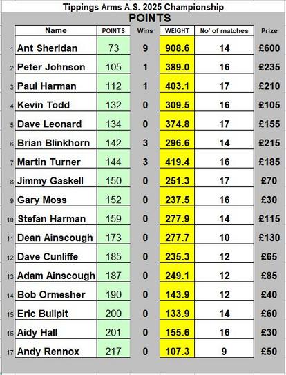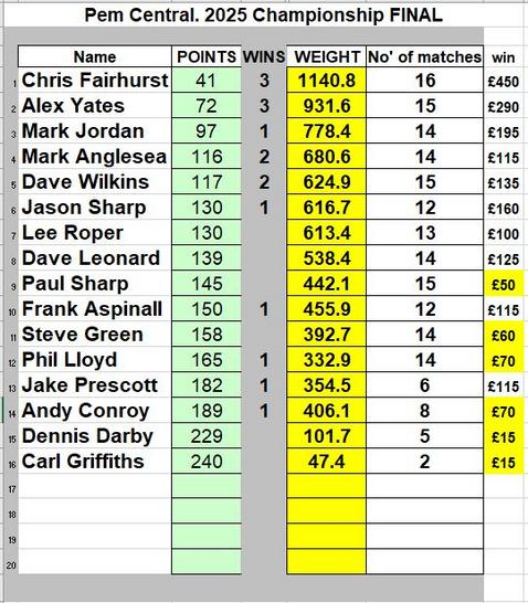 2025 Championship Tables