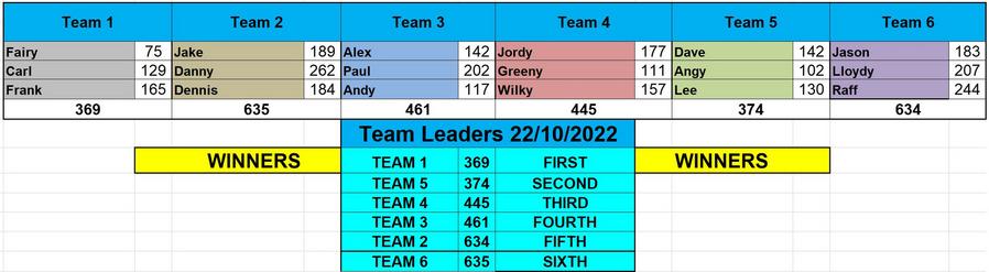 Pem 2022 Team Championship table